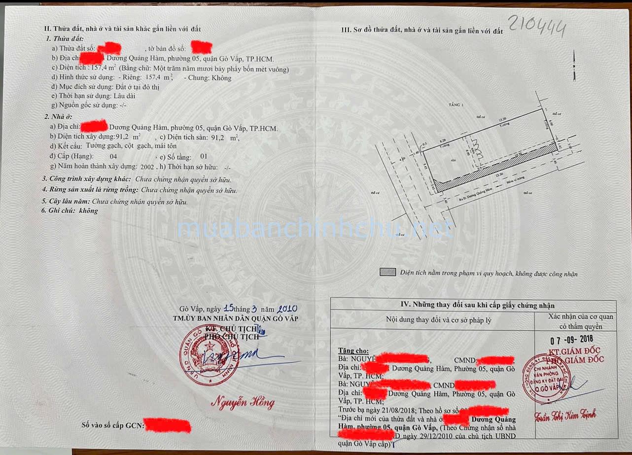 – Diện tích: 190 m2, 157,4 m² đất ở đô thị (xây dựng được), 33 m² đất trong ranh hiện làm sân (sử dụng thực tế)