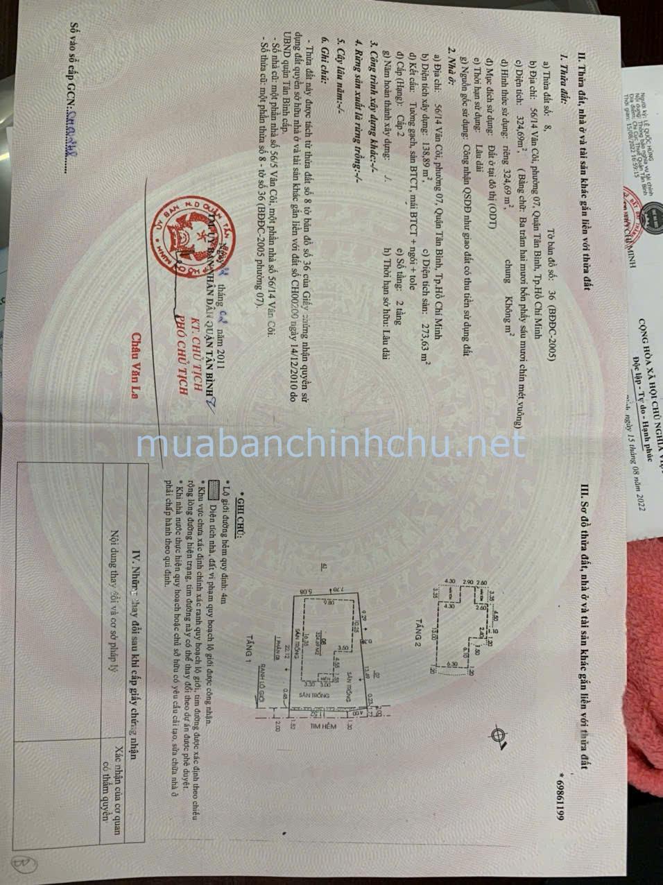 – Diện tích: 324.69 m2, hẻm 4m