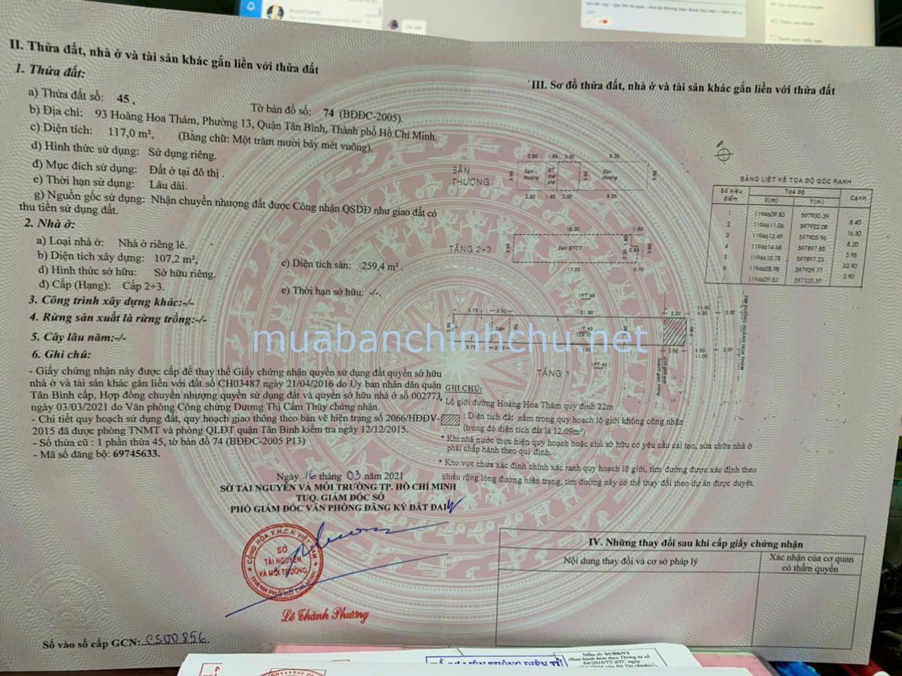 Chính chủ cần bán nhà mặt tiền Hoàng Hoa Thám, Phường 13, Quận Tân Bình